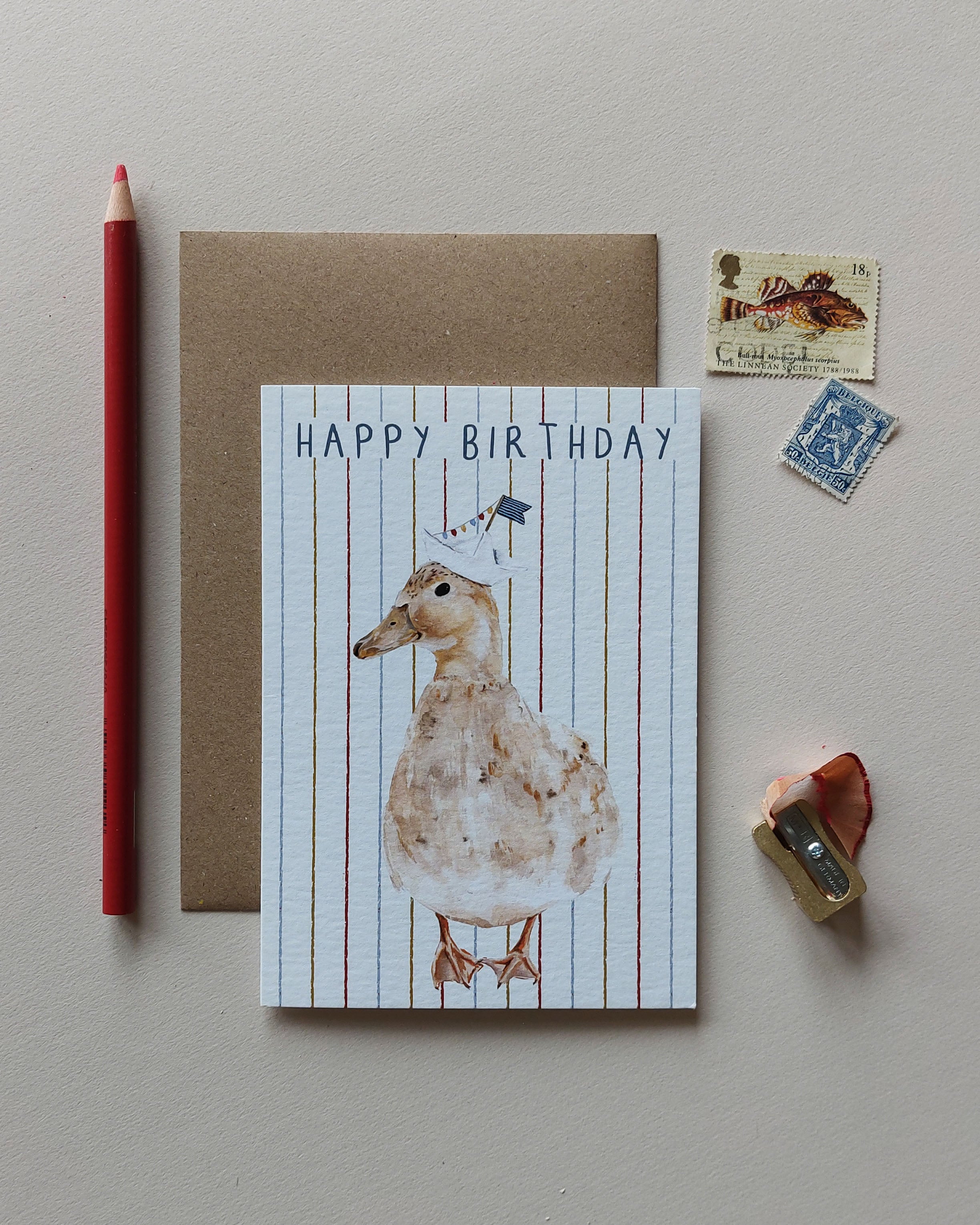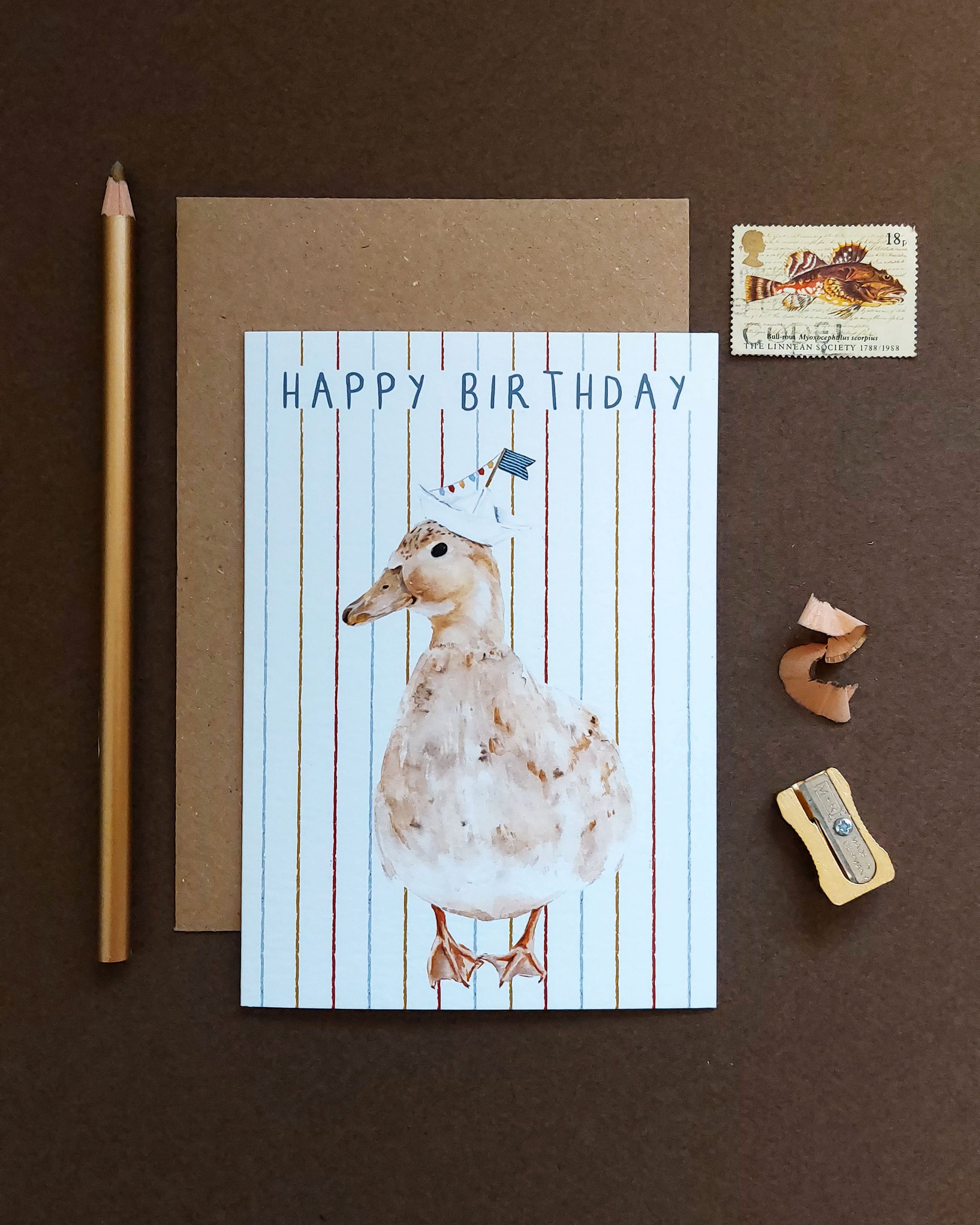 A charming hand-painted vintage nautical duck card, the perfect birthday card for all ages.